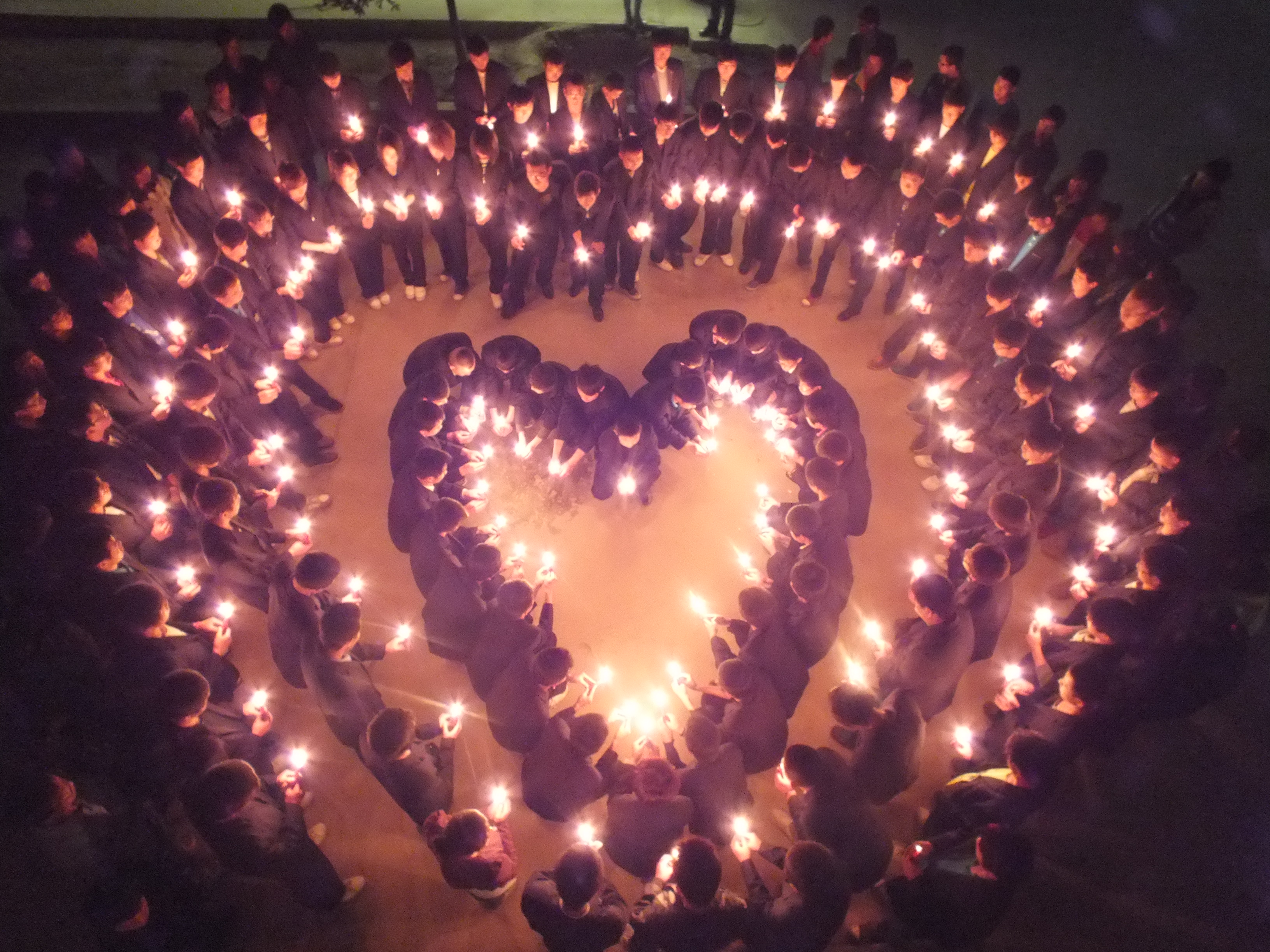 祈?;顒蝇F(xiàn)場莊嚴肅穆,學生和志愿者代表分別發(fā)言,表達了對雅安的牽掛,并呼吁大家積極幫助雅安同胞。全場學生共同點亮蠟燭,為災區(qū)遇難者默哀。