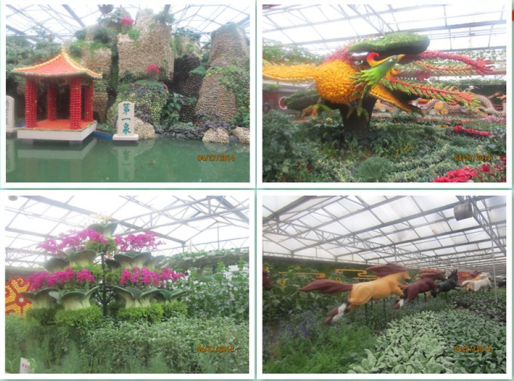 蔬菜園藝廳為優(yōu)秀蔬菜景觀的集中營,五顏六色的種子、蔬菜、花卉及其他普通材料,在園藝師的手中演繹成氣勢恢弘、雄偉壯觀、形神兼?zhèn)?、意趣天成的藝術精品。其中主景點“美麗中國”將大明湖牌坊、蓬萊閣、五岳獨尊、孔子雕像、象鼻山、黃果樹瀑布、云岡石窟、嘉峪關、長白山瀑 布……30余個國內(nèi)知名人文及自然景點穿插其中。整個景點從遠處看去,把祖國的大好河山、現(xiàn)代科技和鮮活蔬菜有機融為一體,凸顯著“綠色·科技·未來”的主題。