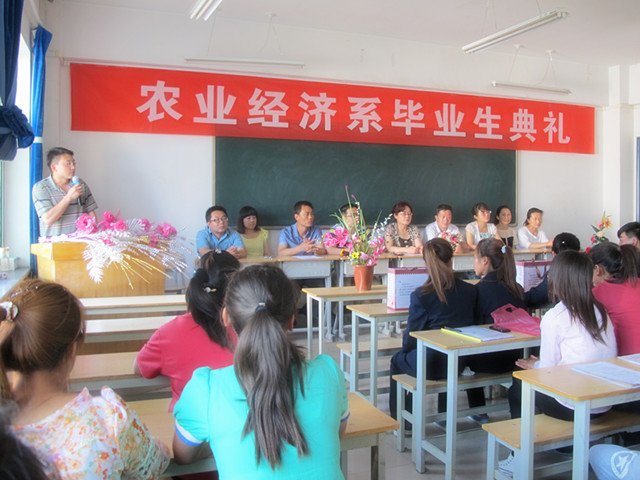 在畢業(yè)典禮上,蔡飛宣讀了2014農(nóng)經(jīng)系優(yōu)秀畢業(yè)生的名單,同時(shí)頒發(fā)了榮譽(yù)證書(shū)。晏素珍做了講話,她指出大學(xué)生活對(duì)學(xué)生的影響是潛移默化的、是深入血液的、更是會(huì)持續(xù)發(fā)酵的。武威職業(yè)學(xué)院始終堅(jiān)持自己的傳統(tǒng)和精神,始終堅(jiān)持“厚德長(zhǎng)技”的崇高理想,始終堅(jiān)持對(duì)“崗位需要即人才”的不懈追求,也讓所有從這個(gè)校門(mén)中走出的人感到更加地自豪。作為系主任和長(zhǎng)輩,晏素珍以“多一點(diǎn)追求理想的情懷、多一點(diǎn)對(duì)追求卓越的堅(jiān)持、多一點(diǎn)對(duì)社會(huì)的愛(ài)”與畢業(yè)生們共勉,并希望畢業(yè)生在新的人生旅途中帶上師長(zhǎng)的祝福和同窗的友誼,帶上美好的希望和心中的理想,更帶上農(nóng)經(jīng)系滿滿的期望,去實(shí)現(xiàn)自己的人生目標(biāo),實(shí)現(xiàn)報(bào)銷祖國(guó)的愿望。
