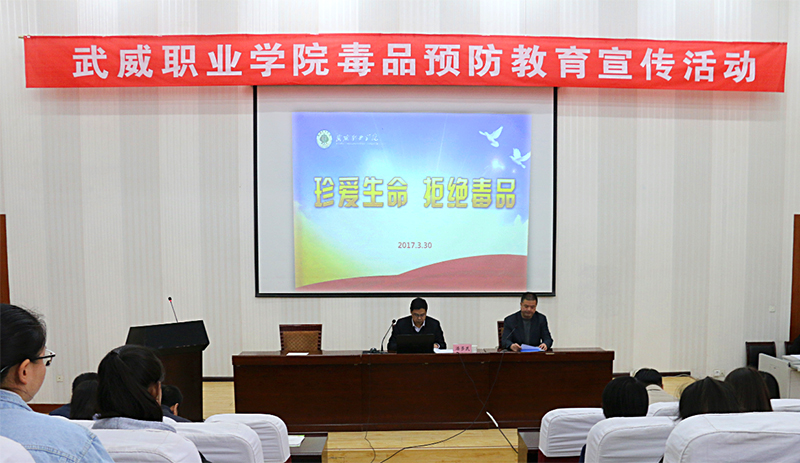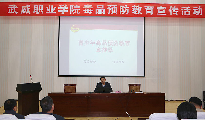 3月30日下午,院團(tuán)委聯(lián)合學(xué)生工作處、保衛(wèi)處在正德廳舉辦武威職業(yè)學(xué)院毒品預(yù)防教育宣傳活動,團(tuán)市委書記潘多民出席活動并授課,學(xué)院各級團(tuán)干部270多人參加了活動?;顒佑蓪W(xué)生工作處處長王守云主持。