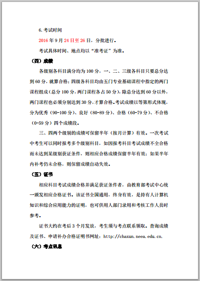 關于組織2016年9月全國計算機等級考試(NCRE)報名的通知