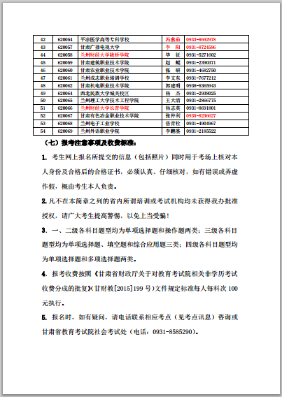 6.請各教學系將《甘肅省2016下半年全國計算機等級考試公告》等信息傳達到每個考生。