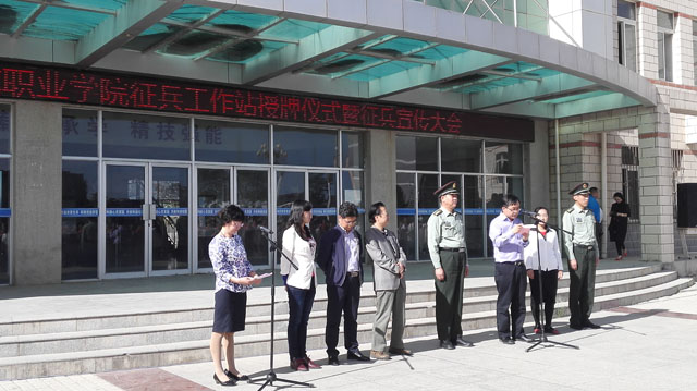 在宣傳大會上,武威軍分區(qū)向學院授予了“武威職業(yè)學院征兵工作站”牌。學院副院長潘玉華做了表態(tài)發(fā)言,她表示,學院將以今天的授牌儀式暨征兵宣傳大會為契機,認真貫徹黨中央、國務院、中央軍委關于加強大學生征兵工作的重要決策部署及省、市委總體要求,全面落實2016年全省大學生征兵工作網(wǎng)絡視頻會議精神,進一步健全我院大學生征兵工作體制機制,通過多種形式,廣泛深入開展宣傳教育工作,讓每位學生都能及時全面的獲知征兵政策和信息,鼓勵、引導、動員我院學生積極應征入伍,圓滿完成征兵任務,為部隊輸送更好更多的高素質兵源,推動我院大學生征兵工作邁上新的臺階。