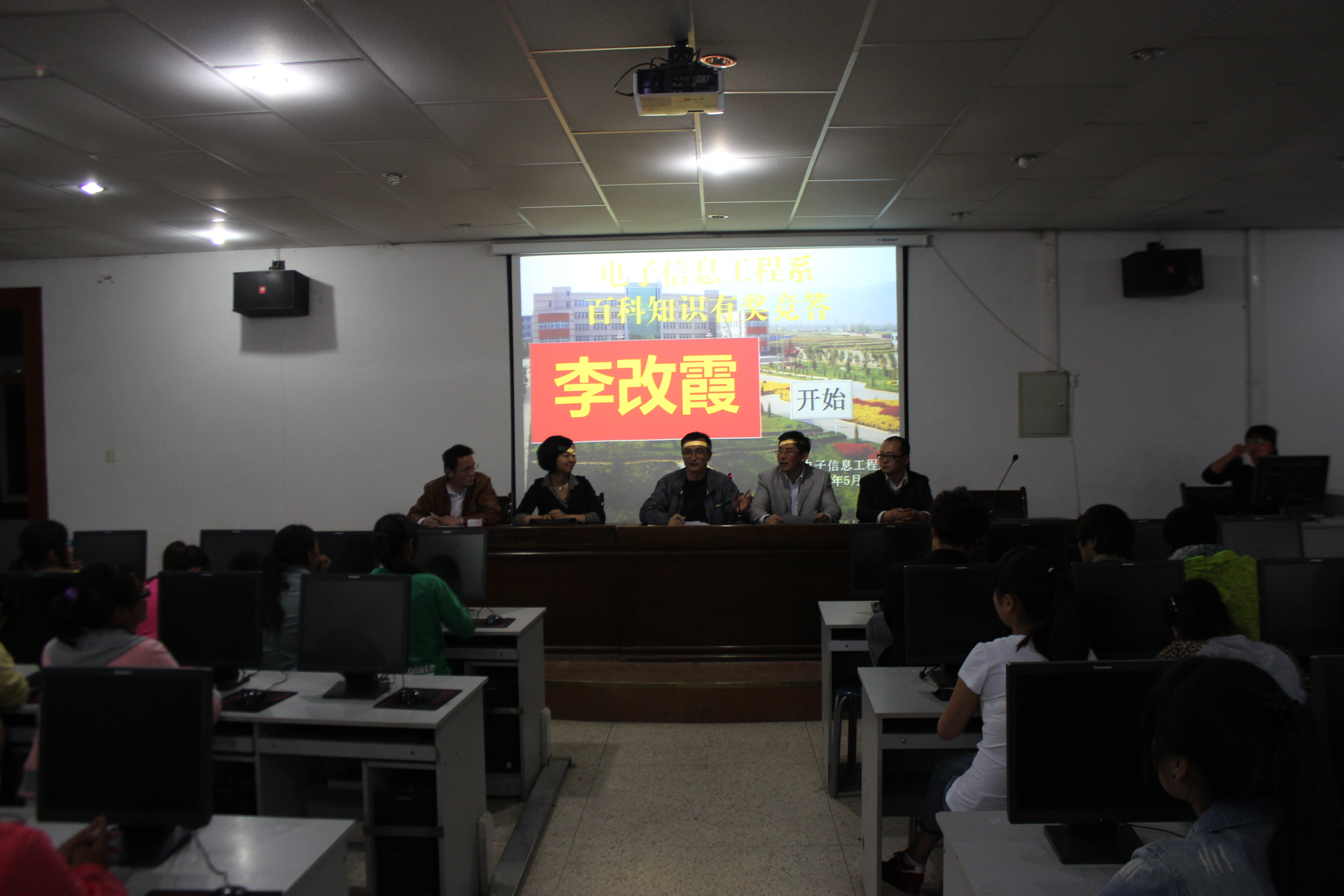 為提高大學(xué)生的綜合素質(zhì),拓展大學(xué)生視野,豐富大學(xué)生活。電子信息工程系團(tuán)總支于5月19日晚在學(xué)院十號(hào)機(jī)房舉辦了百科知識(shí)有獎(jiǎng)競(jìng)答活動(dòng)。系輔導(dǎo)員、團(tuán)總支書記、班主任及200多名在校學(xué)生和參加了活動(dòng)。