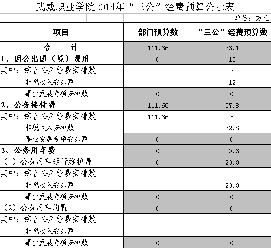 武威職業(yè)學(xué)院2014年“三公”經(jīng)費預(yù)算公示表