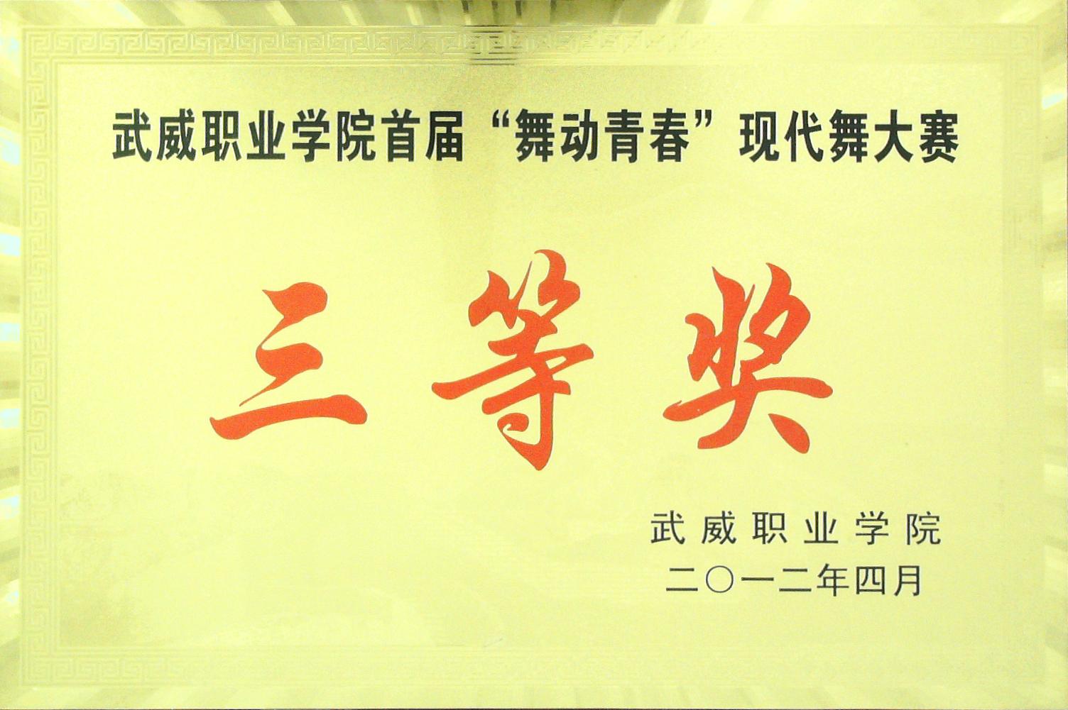 首屆“舞動青春”現(xiàn)代舞大賽中三等獎