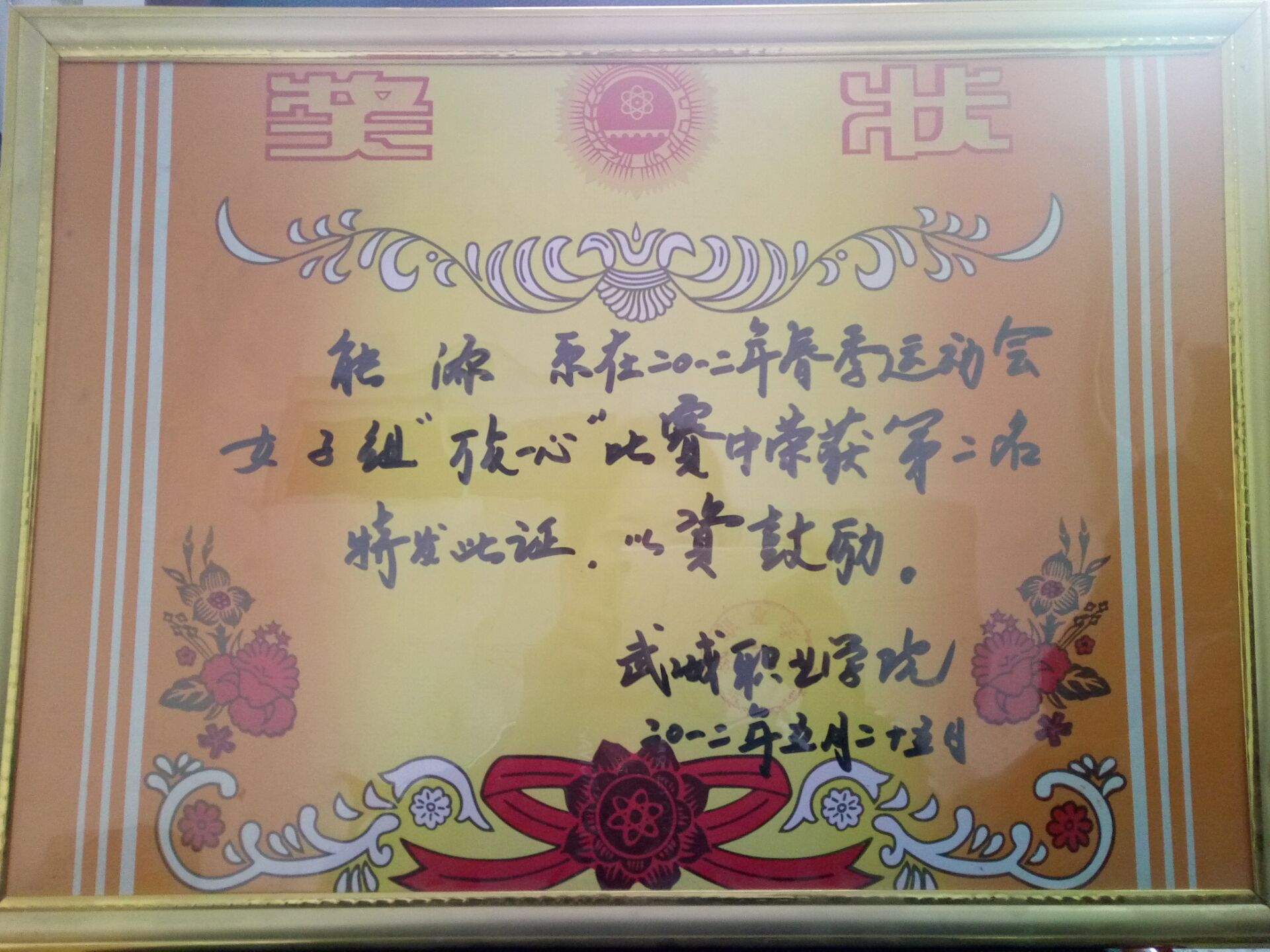 我系代表隊在2012年春季運(yùn)動會“團(tuán)結(jié)一心”比賽榮獲第二名