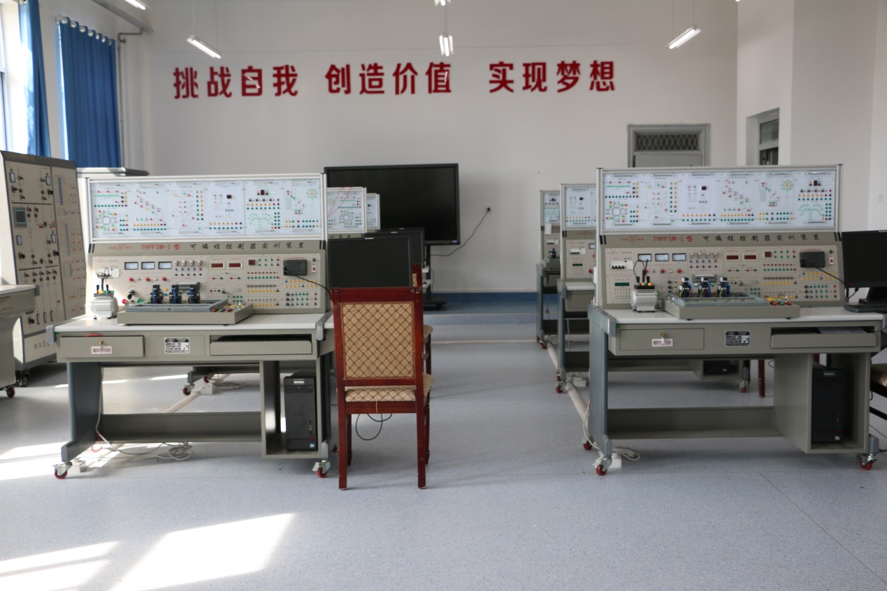 實(shí)訓(xùn)功能:本實(shí)訓(xùn)室擁有供配電技術(shù)實(shí)訓(xùn)裝置、電力系統(tǒng)繼電保護(hù)實(shí)訓(xùn)裝置。可編程控制器實(shí)訓(xùn)裝置共8套。主要服務(wù)課程為《電子電路分析與應(yīng)用》、《PLC》、《電氣安裝規(guī)劃與實(shí)施(電工)》、《供配電技術(shù)》等。