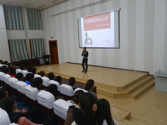 為更好的幫助2014級新生盡快轉(zhuǎn)變角色,適應(yīng)大學(xué)生活,合理規(guī)劃學(xué)業(yè)生涯。經(jīng)濟(jì)管理系團(tuán)總支特邀請趙軍生老師,于11月中旬在東階梯教室做了 “不要等到畢業(yè)以后——致新生的一堂公開課”專題講座。