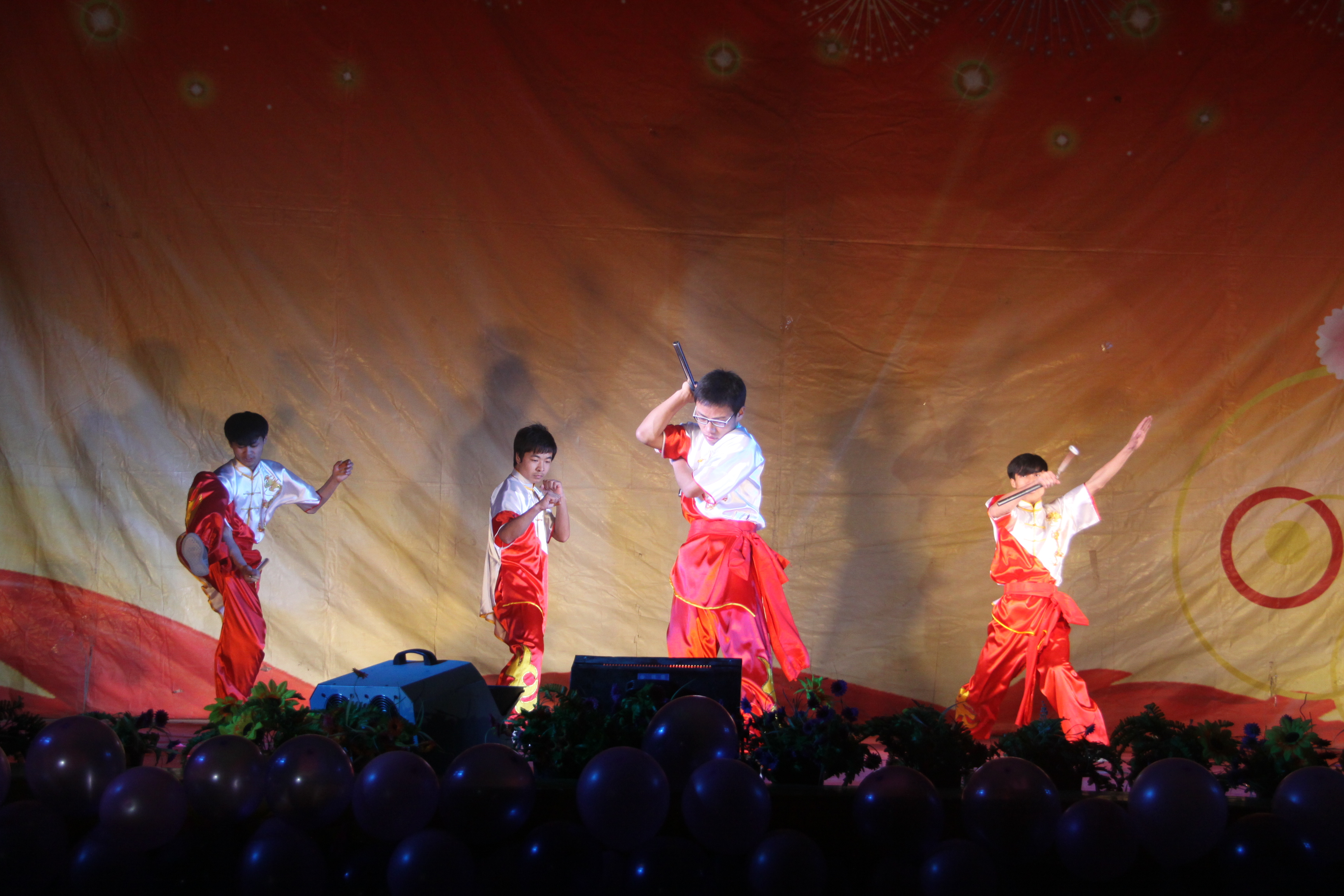 晚上的開幕式文藝演出有近1200名師生觀看,現場氣氛熱烈。各社團表演了精彩紛呈的文藝節(jié)目,有舞蹈《歡樂的跳吧》、《有沒有》、《Boy and girl》等,歌伴舞《青花瓷》、《瑪利亞》,獨唱《紅日》,樂隊表演《約定的地方》,曲藝類節(jié)目《魔術表演》、相聲《說地名》、小品《大話西游》和武術表演、詩歌朗誦等。整個演出洋溢著青春的風采,讓現場的每一位同學感受到了社團文化的無窮魅力。