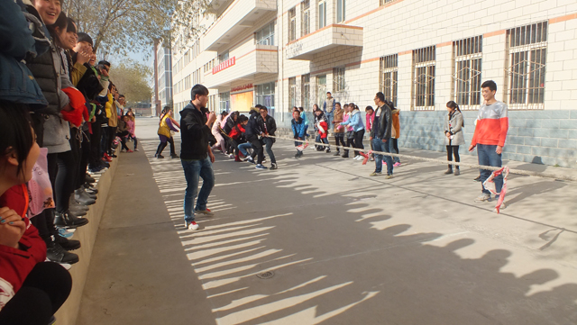 隨著蔡柱山宣布運動會正式開始的指令發(fā)出,拔河決賽立刻在熱烈的氣氛中拉開了架勢,進(jìn)入決賽的班級在裁判的指導(dǎo)下迅速進(jìn)入指定位置,各班同學(xué)紛紛加油助威,運動場上氣氛頓時被調(diào)動起來了。根據(jù)賽程安排,籃球賽、“15人跳繩”、乒乓球賽等集體和單人的各項比賽依次有序進(jìn)行,特別是跳繩比賽,參與面廣,同學(xué)們都積極投入其中,感受到運動的樂趣和團結(jié)的力量。