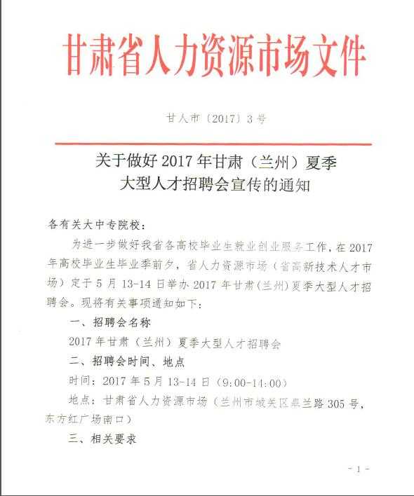 《關(guān)于做好2017年甘肅(蘭州)夏季人才招聘會宣傳的通知》