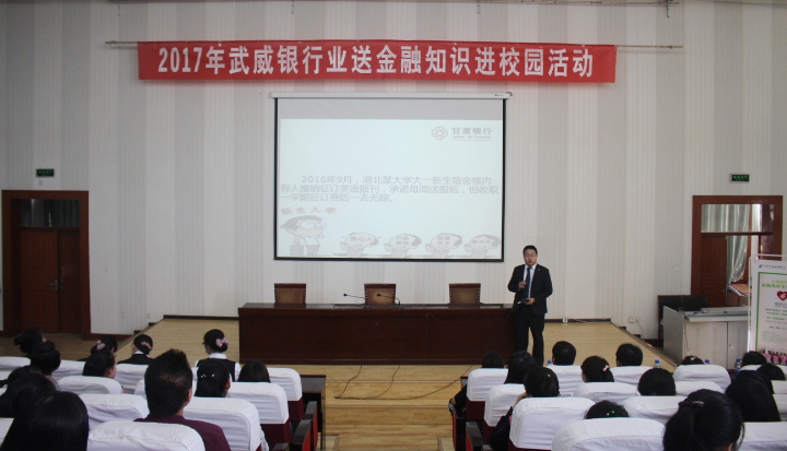 為幫助同學們了解和掌握銀行業(yè)消費常識,增強科學合理使用銀行產品和服務的能力,提升同學們對金融業(yè)務的風險防范和識別能力,5月11日下午,經濟管理系與甘肅銀行武威分行、郵政儲蓄銀行武威市分行在學院正德廳聯(lián)合開展了“銀行業(yè)送金融知識進校園”宣講活動。經濟管理系會計電算化、證券與期貨專業(yè)的350余名同學參加了此次宣講會。