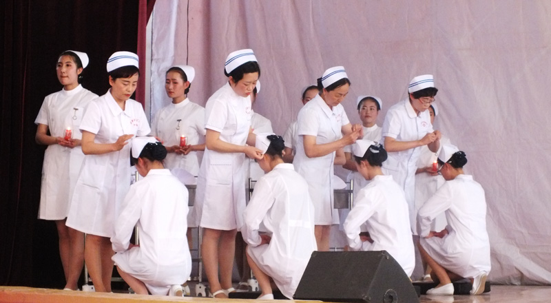 為繼承和弘揚南丁格爾精神,積極推動護理專業(yè)人才建設和職業(yè)內(nèi)涵塑造,展示我院護理專業(yè)師生風采,在第106個國際護士節(jié)來臨之際,學院于5月12日下午在大禮堂隆重舉辦了慶祝國際護士節(jié)活動,武威市衛(wèi)生計生委副主任潘玉華、學院黨委副書記趙明、紀委書記張富國、副院長王永緒、直屬附屬醫(yī)院護理部主任、相關(guān)處室領(lǐng)導及護理系全體師生1200余人參與了本次活動?;顒影ㄗo士授帽儀式,護理實踐技能操作表演,第四屆護理技能大賽頒獎,慶祝“5.12”護士節(jié)文藝演出等內(nèi)容。