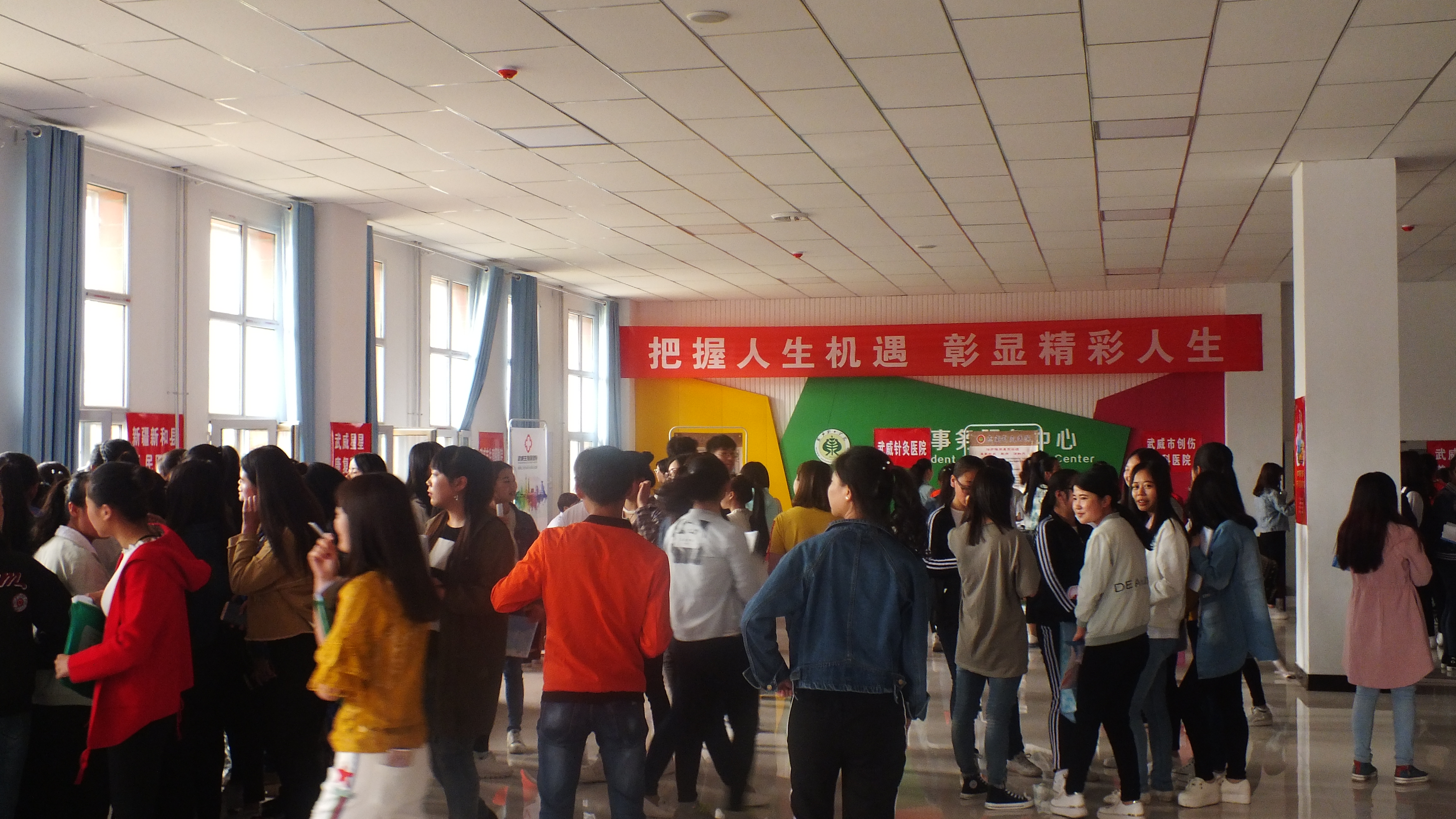 為促進(jìn)我院護(hù)理、助產(chǎn)專業(yè)發(fā)展,拓寬畢業(yè)生就業(yè)渠道,搭建畢業(yè)生與用人單位雙向交流平臺(tái),學(xué)院于5月15日在大學(xué)生活動(dòng)中心舉辦了2017屆護(hù)理、助產(chǎn)專業(yè)畢業(yè)生校園專場(chǎng)招聘會(huì),共有來(lái)自省內(nèi)外的12家醫(yī)療機(jī)構(gòu)及相關(guān)企業(yè)來(lái)我院選拔人才,護(hù)理系400余名2017屆畢業(yè)生參加了本次招聘會(huì)。在招聘會(huì)上,畢業(yè)生向各用人單位遞交了個(gè)人簡(jiǎn)歷,并咨詢了個(gè)人就業(yè)的相關(guān)問(wèn)題,100余人與就業(yè)單位達(dá)成初步就業(yè)意向,40余人與就業(yè)單位現(xiàn)場(chǎng)簽訂就業(yè)協(xié)議。