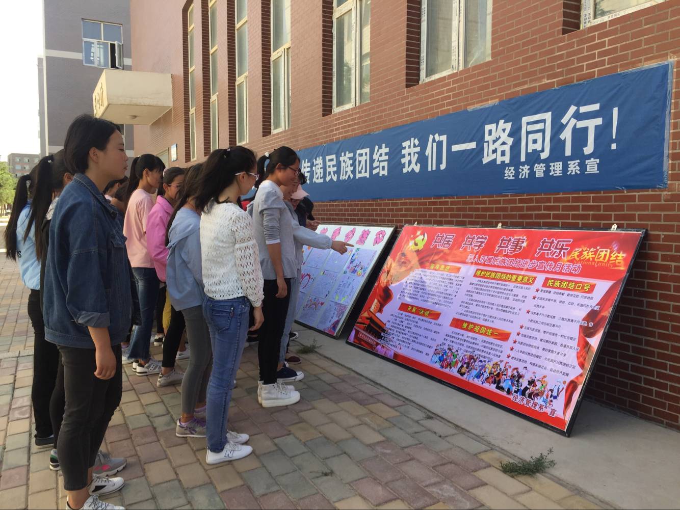 5月17日-20日,經(jīng)濟(jì)管理系開(kāi)展了“民族團(tuán)結(jié)進(jìn)步宣傳月”系列活動(dòng)。通過(guò)擺放展板、懸掛條幅、建立文化墻、辦黑板報(bào)及召開(kāi)主題團(tuán)會(huì)等活動(dòng)。增強(qiáng)了廣大師生對(duì)民族文化的了解和認(rèn)同,強(qiáng)化了民族團(tuán)結(jié)意識(shí),有力推動(dòng)了我系思想政治教育工作。(供稿:經(jīng)濟(jì)管理系  審核:潘從民  撰稿:趙秀君 圖片:趙秀君)