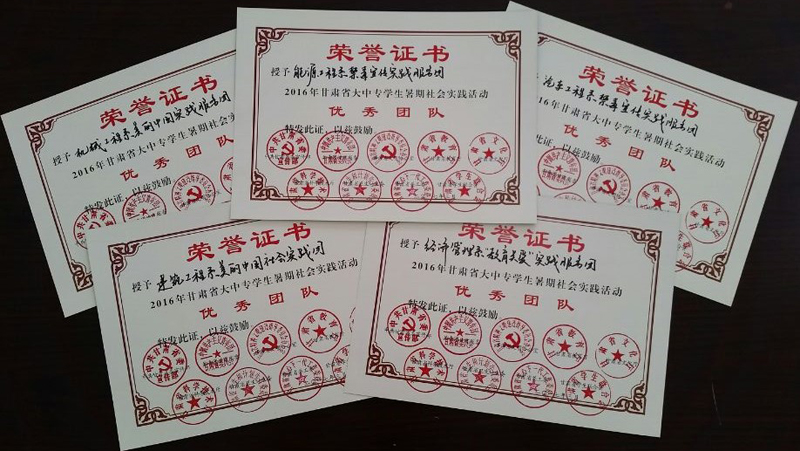 學院團委被省委宣傳部、團省委、省教育廳等九個部門評為2016年甘肅省大中專學生暑期社會實踐活動“優(yōu)秀組織單位”,五個實踐團隊被評為省級“優(yōu)秀團隊”,五名同志被評為“先進個人”,五名教師被評為 “優(yōu)秀指導教師”。