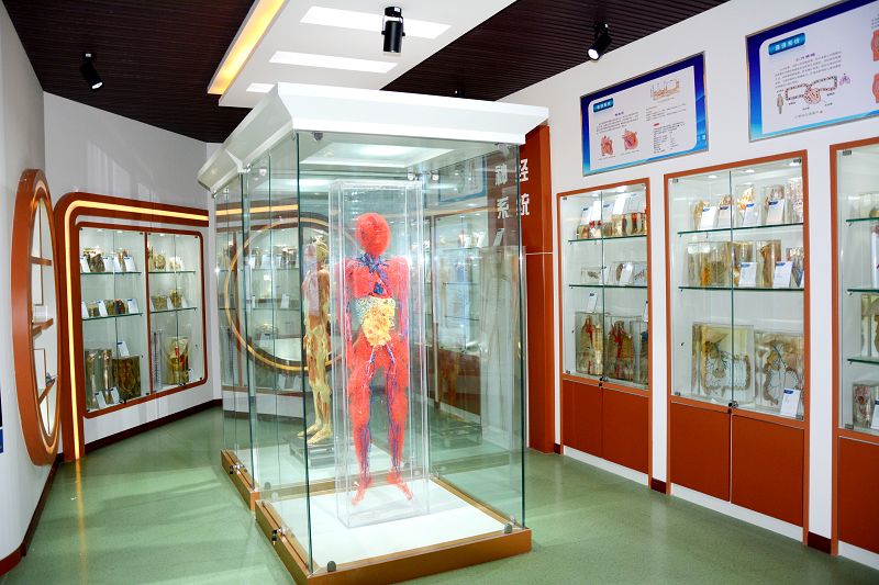 “人體生命科技館”占地210平米,共設(shè)置系統(tǒng)解剖陳列標(biāo)本266件,局部解剖陳列標(biāo)本166件,鑄形標(biāo)本31件,斷面標(biāo)本3件,護(hù)理應(yīng)用解剖標(biāo)本26件,解剖塑化標(biāo)本5件,充分展現(xiàn)了從骨骼、關(guān)節(jié)、肌肉、臟器、血液系統(tǒng)、神經(jīng)系統(tǒng)的人體各個(gè)部分,對(duì)于護(hù)理等醫(yī)學(xué)類專業(yè)學(xué)生加強(qiáng)對(duì)人體結(jié)構(gòu)了解起到了重要作用。