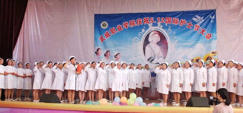 為繼承和弘揚(yáng)南丁格爾精神,積極推動(dòng)護(hù)理專業(yè)人才建設(shè)和職業(yè)內(nèi)涵塑造,展示我院護(hù)理專業(yè)師生風(fēng)采,在第106個(gè)國(guó)際護(hù)士節(jié)來(lái)臨之際,學(xué)院于5月12日下午在大禮堂隆重舉辦了慶祝國(guó)際護(hù)士節(jié)活動(dòng),武威市衛(wèi)生計(jì)生委副主任潘玉華、學(xué)院黨委副書記趙明、紀(jì)委書記張富國(guó)、副院長(zhǎng)王永緒、直屬附屬醫(yī)院護(hù)理部主任、相關(guān)處室領(lǐng)導(dǎo)及護(hù)理系全體師生1200余人參與了本次活動(dòng)?;顒?dòng)包括護(hù)士授帽儀式,護(hù)理實(shí)踐技能操作表演,第四屆護(hù)理技能大賽頒獎(jiǎng),慶祝“5.12”護(hù)士節(jié)文藝演出等內(nèi)容。
