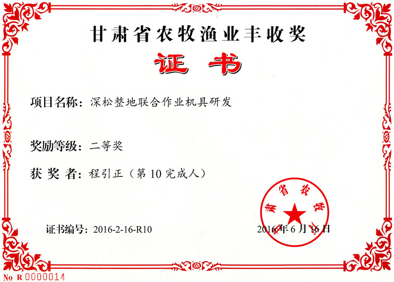 甘肅省農牧漁業(yè)豐收獎-深松整地聯合作業(yè)機具研發(fā)