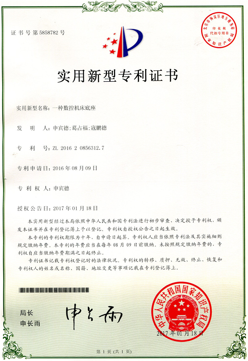 科研成果---實用新型專利:一種數(shù)控機床底座