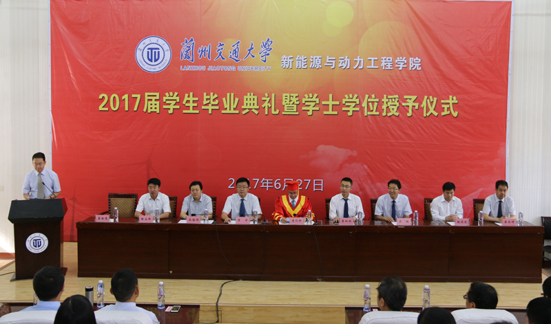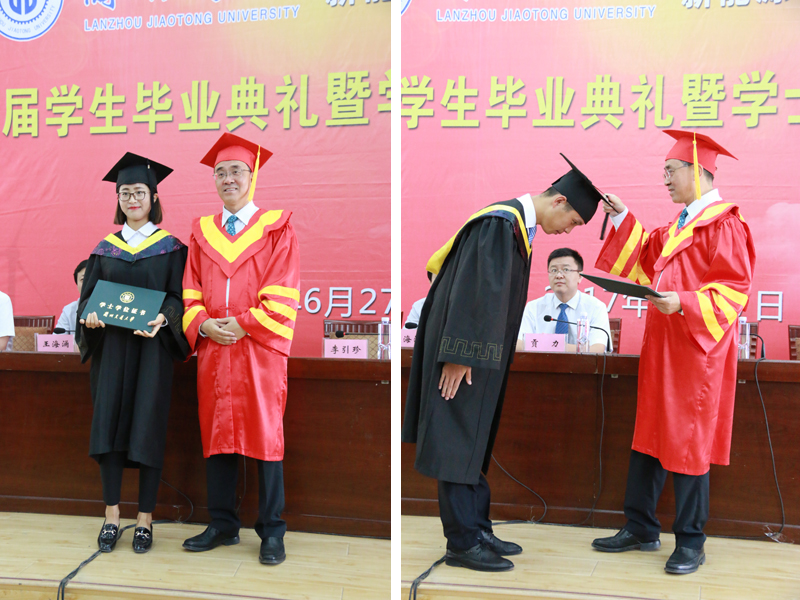 蘭交大教務(wù)處副處長王海涌宣讀了關(guān)于授予學(xué)士學(xué)位的決定;學(xué)生處處長貢力宣讀了關(guān)于表彰2016屆優(yōu)秀畢業(yè)生的決定;校黨委副書記、常務(wù)副校長李引珍為2017屆畢業(yè)生代表正冠撥穗并頒發(fā)學(xué)位證書;各位領(lǐng)導(dǎo)為畢業(yè)生頒發(fā)了畢業(yè)證書和優(yōu)秀畢業(yè)生榮譽證書。