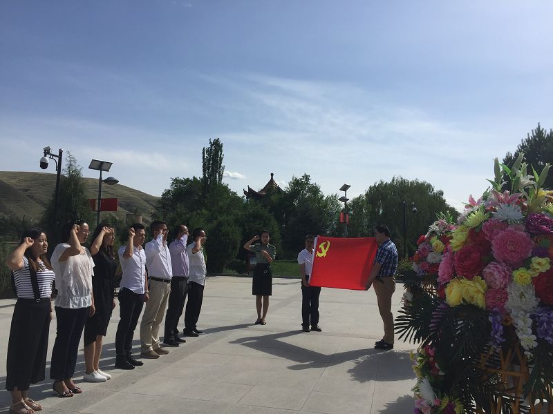 在紅軍西路軍烈士紀(jì)念碑前,面對鮮紅的黨旗,全體黨員高舉右手,莊嚴(yán)宣誓,重溫了入黨誓詞,接受黨性再教育。在參觀西路軍古浪戰(zhàn)役紀(jì)念館時,大家跟隨講解員,認(rèn)真聆聽西路軍英勇無畏﹑艱苦斗爭的革命故事。