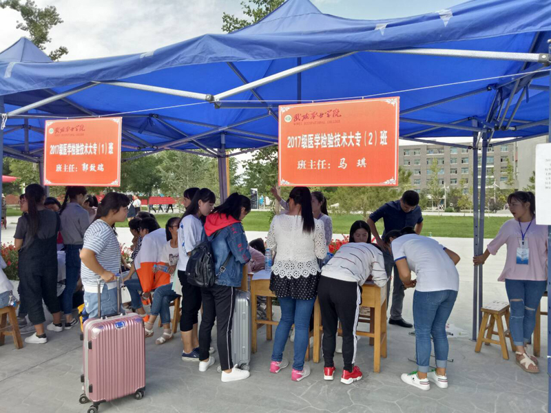 丹桂飄香正九月,又到一年迎新時。武威職業(yè)學院2017級新生報到工作于9月2日正式開始。醫(yī)學技術(shù)與信息管理系學生組織負責人和志愿者們奔跑在大學生活動中心北廣場的各個角落,幫助新生搬運行李和提供飲用水,熱情周到的服務給家長留下了深刻的印象;在新生接待區(qū),迎新的老師和學生耐心細致地為新生及其家長解決疑難問題,認真負責的態(tài)度得到了家長和新生們的一致贊許,迎新現(xiàn)場還為新生家長們設立了專門休息區(qū),家長們或抬頭觀望,或互相攀談。為了使新生順利入學,我系師生全力以赴,為新生及家長提供熱心、真誠、周到的服務,期待新生們與學校一起共創(chuàng)新輝煌!