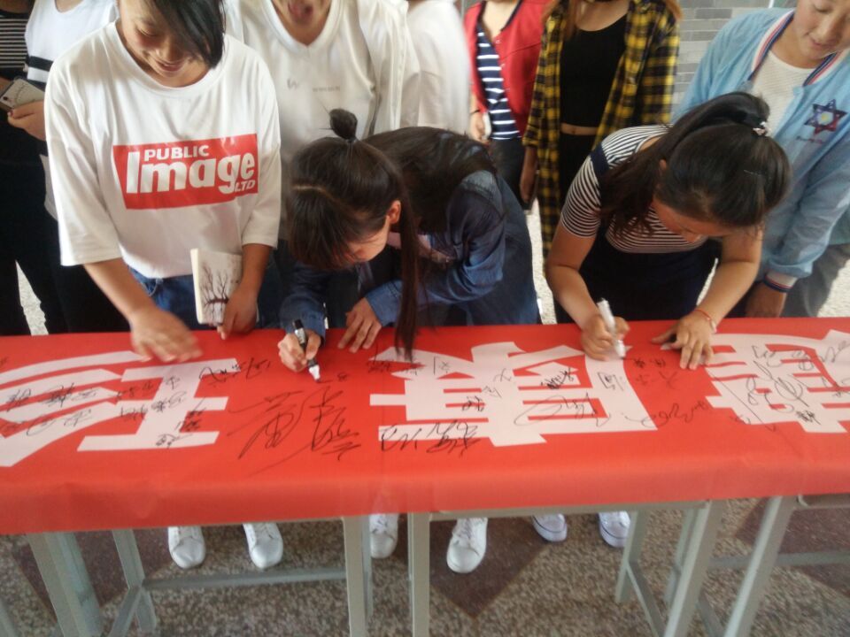 5月22日 ,系團學會制作橫幅標語“關注健康、珍愛生命”,召集簽名活動。