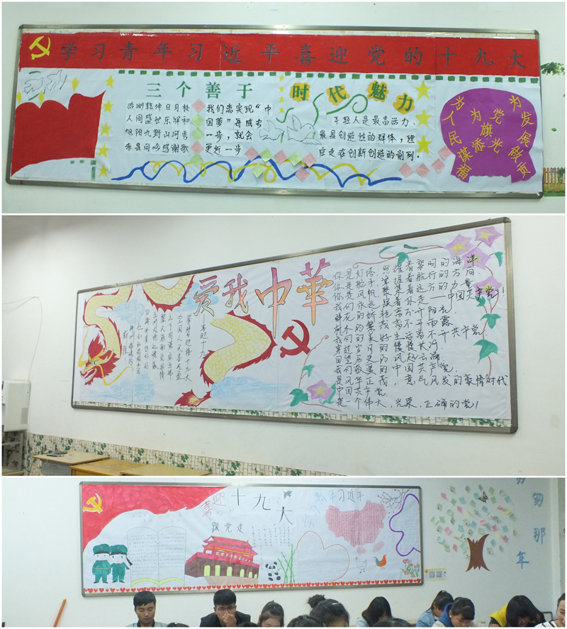 在黨的十九大即將召開(kāi)之際,為進(jìn)一步深化“中國(guó)夢(mèng)”和“社會(huì)主義核心價(jià)值觀”主題教育,增進(jìn)我系學(xué)生的愛(ài)國(guó)熱情和團(tuán)結(jié)意識(shí),營(yíng)造良好的校園文化氛圍,引導(dǎo)學(xué)生準(zhǔn)確把握中國(guó)夢(mèng)的本質(zhì)屬性,將個(gè)人夢(mèng)想融入中國(guó)夢(mèng)中,自覺(jué)增強(qiáng)奮斗拼搏精神,積極踐行社會(huì)主義核心價(jià)值觀,10月10日,經(jīng)我系黨總支研究決定,由系團(tuán)總支負(fù)責(zé),各班團(tuán)支部開(kāi)展“學(xué)習(xí)青年習(xí)近平,喜迎黨的十九大”為主題的黑板報(bào)評(píng)比活動(dòng)。