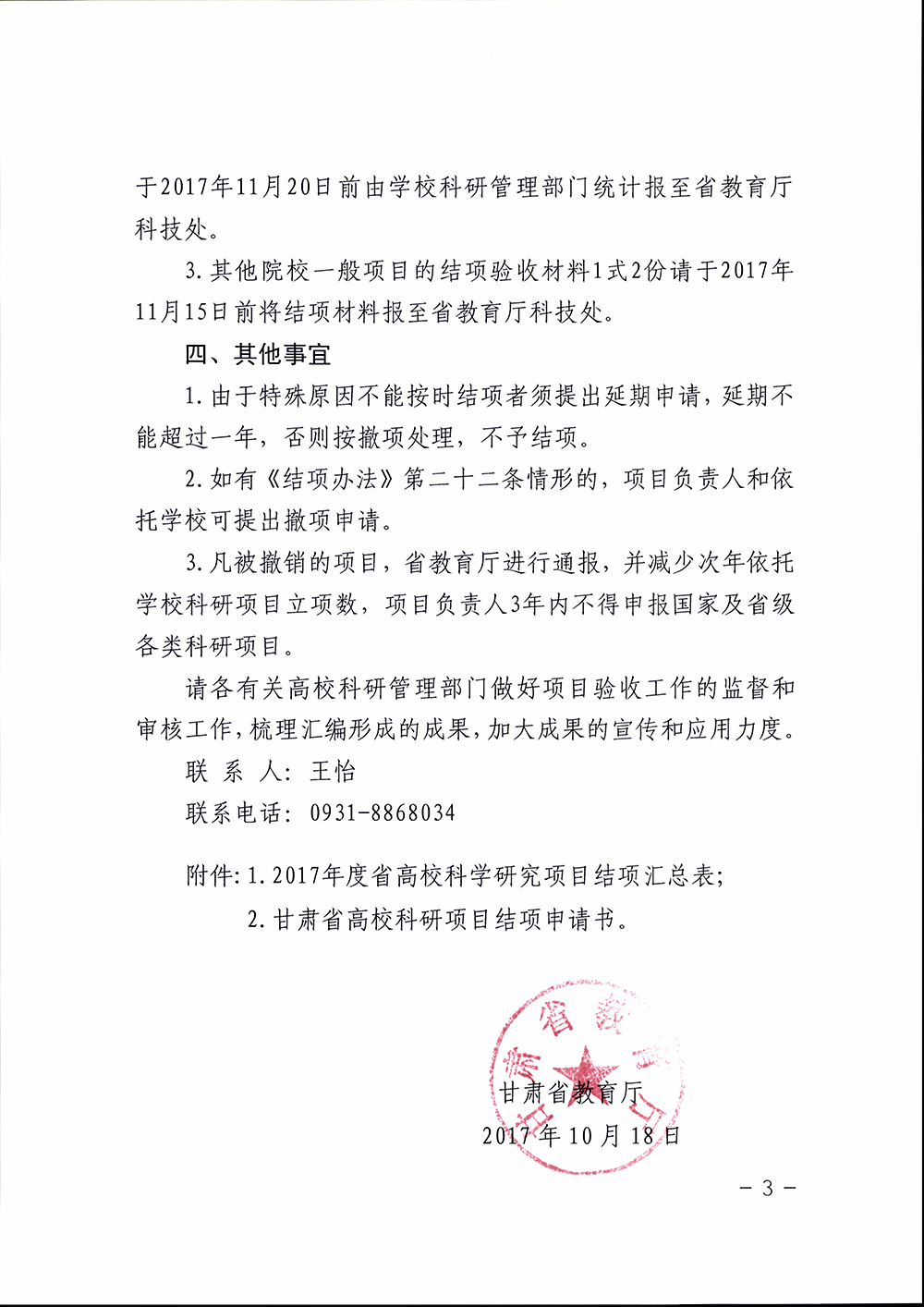 轉(zhuǎn)發(fā)甘肅省教育廳關(guān)于對(duì)2017年度甘肅省高等學(xué)??茖W(xué)研究項(xiàng)目進(jìn)行結(jié)項(xiàng)驗(yàn)收工作安排的通知