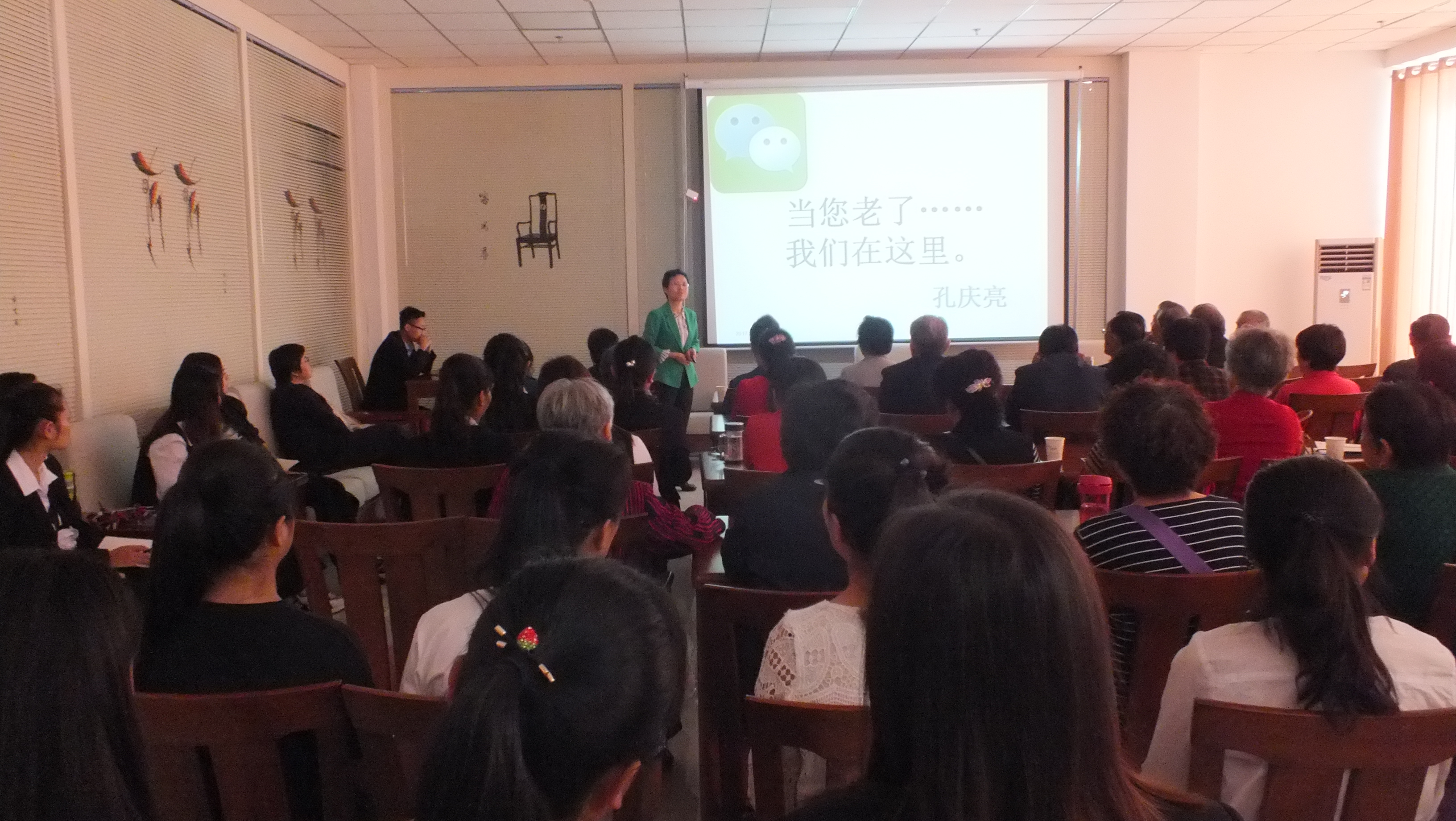 目前,我國老齡化社會形態(tài)已現(xiàn)雛形,養(yǎng)老問題日益突出,學院充分發(fā)揮學科資源優(yōu)勢,由專業(yè)教師為養(yǎng)老中心老年人做專題講座,介紹我國養(yǎng)老服務體系及養(yǎng)老現(xiàn)狀,普及老年人心理健康、生活保健、疾病預防等方面的相關(guān)知識,使老年人體會到“老有所養(yǎng),老有所樂”,為我市老年人群體解決醫(yī)療保健問題提供了一個獲取專業(yè)幫助的渠道。
