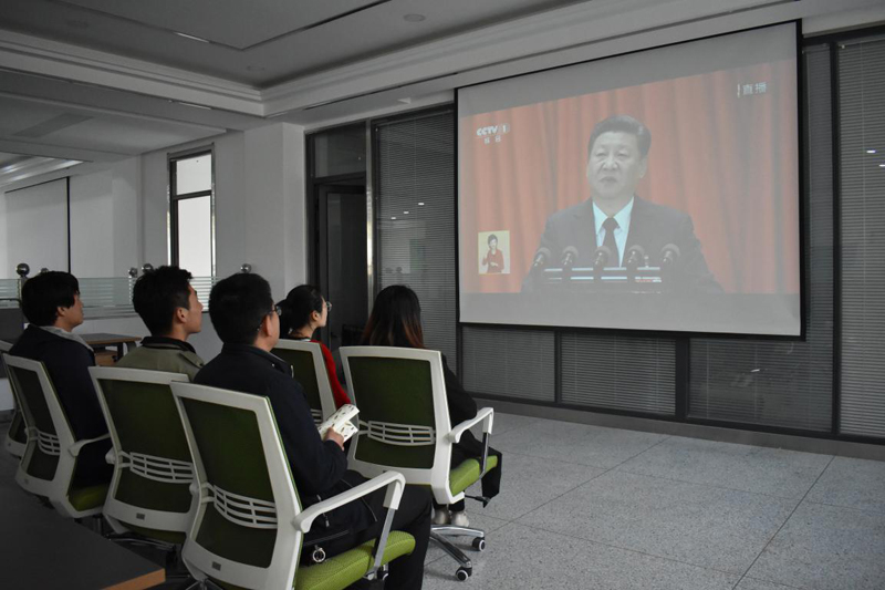 10月18日上午9時(shí),雙創(chuàng)中心負(fù)責(zé)人胡建宏在行樹(shù)樓210會(huì)議室與學(xué)院部門負(fù)責(zé)人集中觀看了黨的十九大開(kāi)幕會(huì)盛況,其他兩位教師孟建文、司玲帶領(lǐng)學(xué)生在雙創(chuàng)中心辦公室收看開(kāi)幕會(huì)盛況和習(xí)近平總書記的報(bào)告,認(rèn)真學(xué)習(xí)領(lǐng)會(huì)十九大精神。
