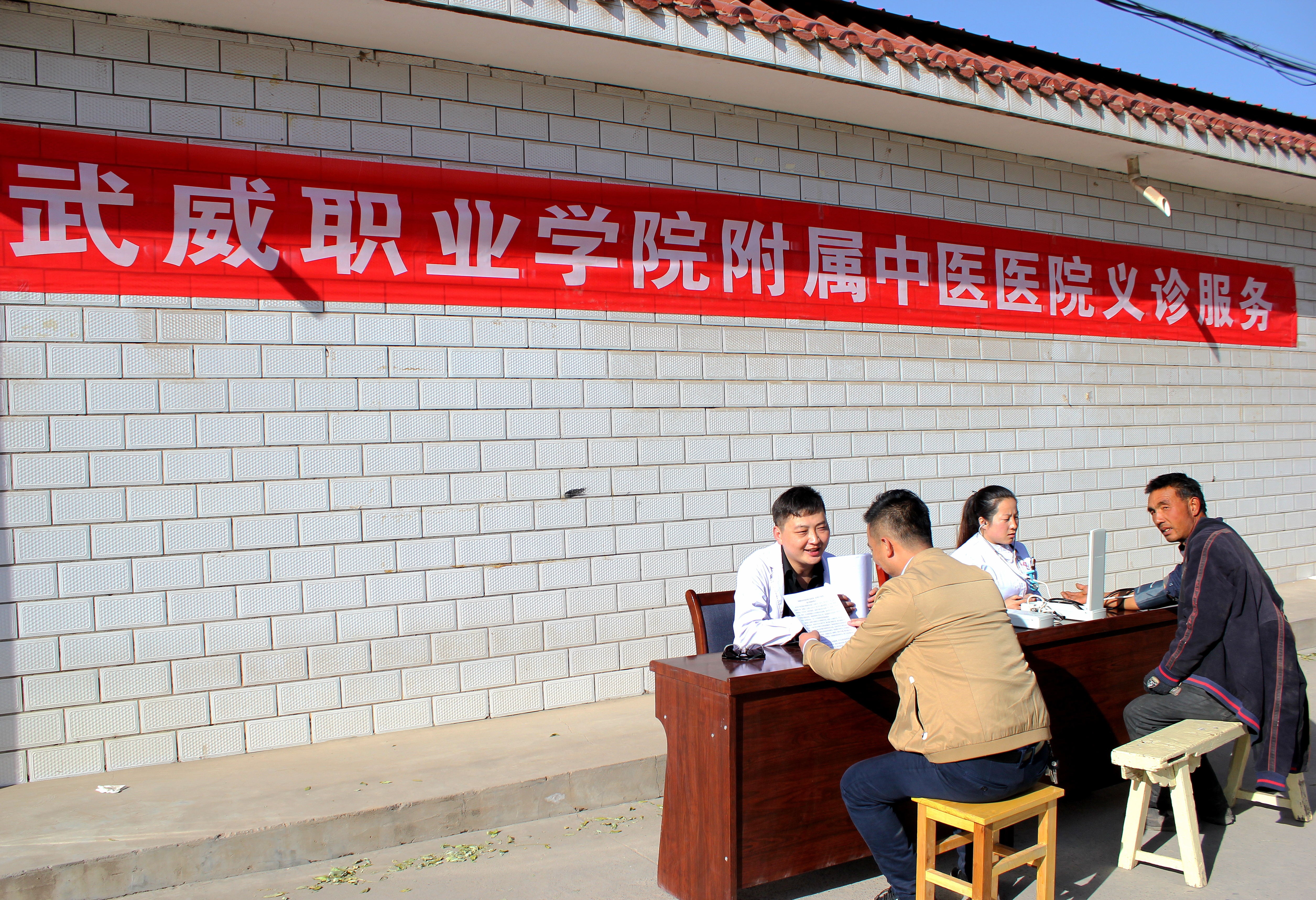 在古城鎮(zhèn)衛(wèi)生院的周密安排下,下午3時(shí),義診服務(wù)隊(duì)在衛(wèi)生院對面的大街上,拉起橫幅,為過往群眾量血壓、開處方,開展醫(yī)療咨詢服務(wù)。
