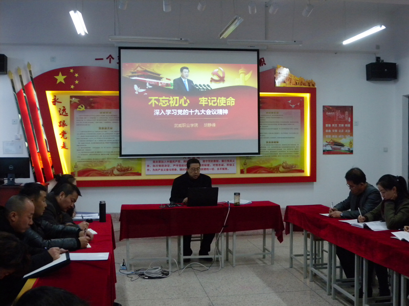 為深入學(xué)習(xí)黨的十九大會議精神,人文藝術(shù)教育系黨總支于2017年11月28日下午在勵勤樓209黨員活動室開展了書記講黨課活動。黨課由胡靜峰同志主講,題目為《不忘初心 牢記使命--深入學(xué)習(xí)黨的十九大會議精神》,全體黨員參加了此次活動。